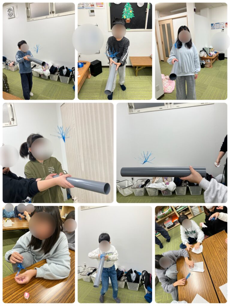 2つ目はパイプとすずらんテープを使った実験です🧪