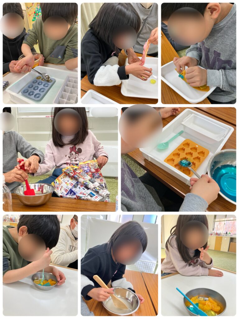 一方、くれいしゅあではおやつ作りをしました!かき氷のシロップで寒天ゼリーを作りました✨