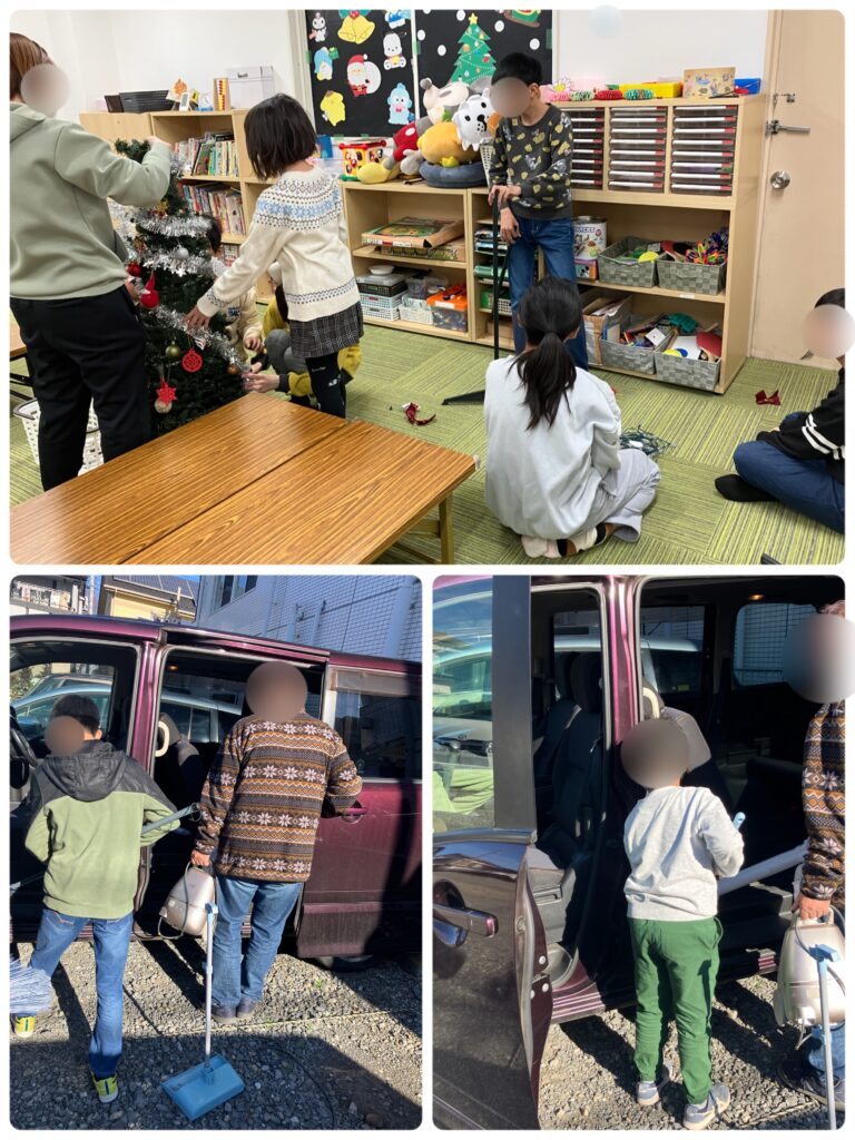今年も一年お世話になりましたの気持ちを込めて普段なかなか掃除できない場所や送迎車、部屋の中、外を職員と一緒にキレイにしてくれました✨